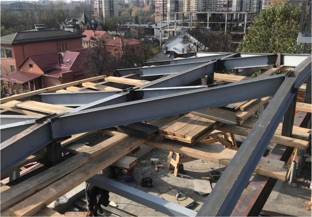 Проєктуємо та монтуємо металоконструкції для заміни, підсилення або оновлення конструктивних елементів: перекриттів, прорізів, покрівель, балконів, фундаментів, надбудов та інших частин будівлі.